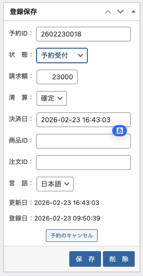 清算の状態や決済日は決済プラグインとの連係で設定されますが、予約管理に合わせて手動でご利用いただく事も可能です。